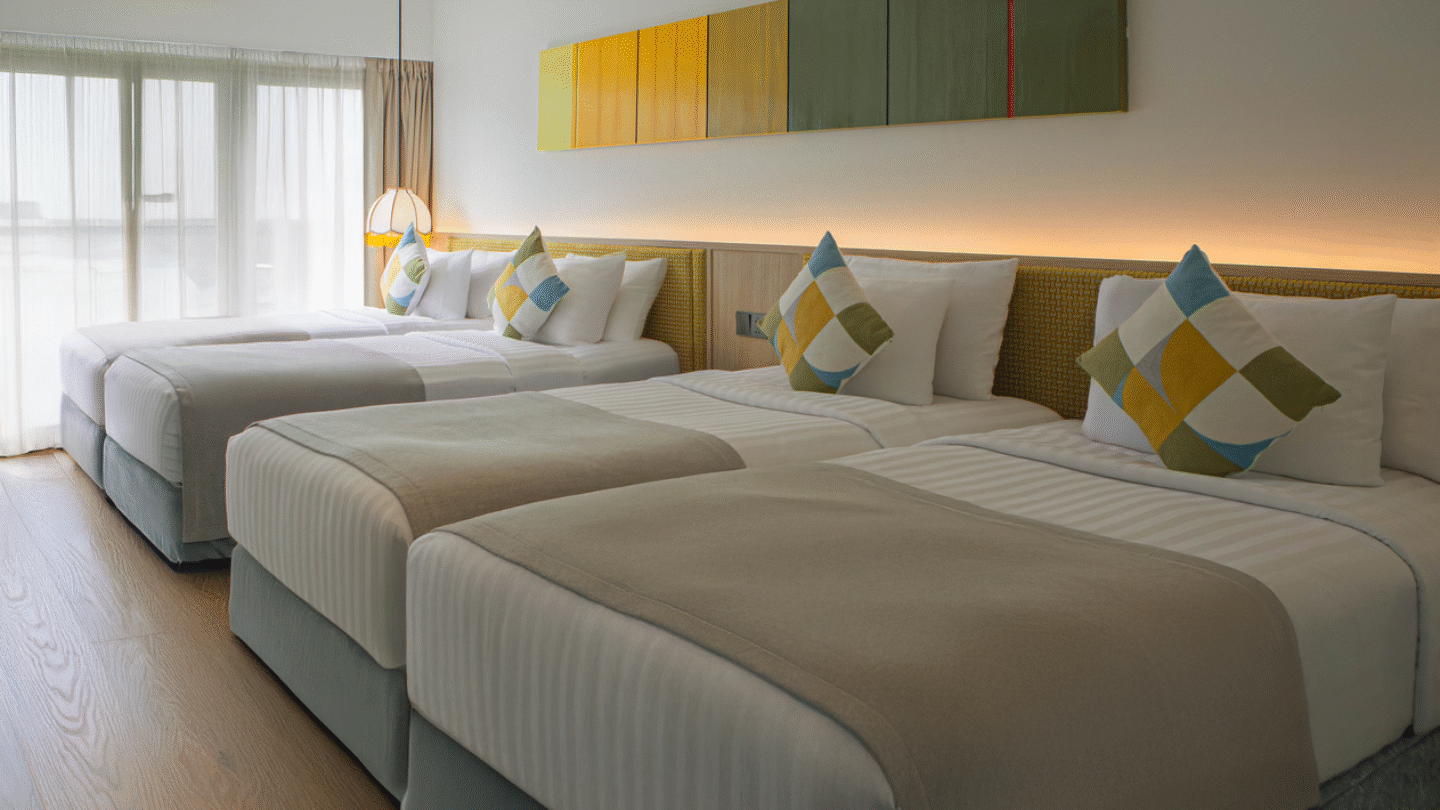 Perfect for friends, families, or small groups, the Glow Quadruple Suite with Balcony offers comfort, space, and a fresh contemporary design within the heart of Patong. Newly renovated and styled with warm tones, soft lighting, and modern finishes, this suite creates an easy-going, relaxed atmosphere for everyone to enjoy.
